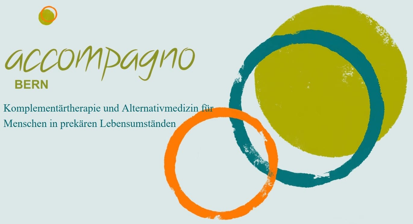 Ich bin Mitglied und Therapeutin bei "accompagno bern". Wir unterstützen Menschen in prekären Situationen und sich keine Behandlung leisten können (Alleinerziehende ohne Zusatzversicherung, Flüchtlinge, Migranten, Menschen in Not, mit Burnout) mit Komplementärtherapie und Alternativmedizin.